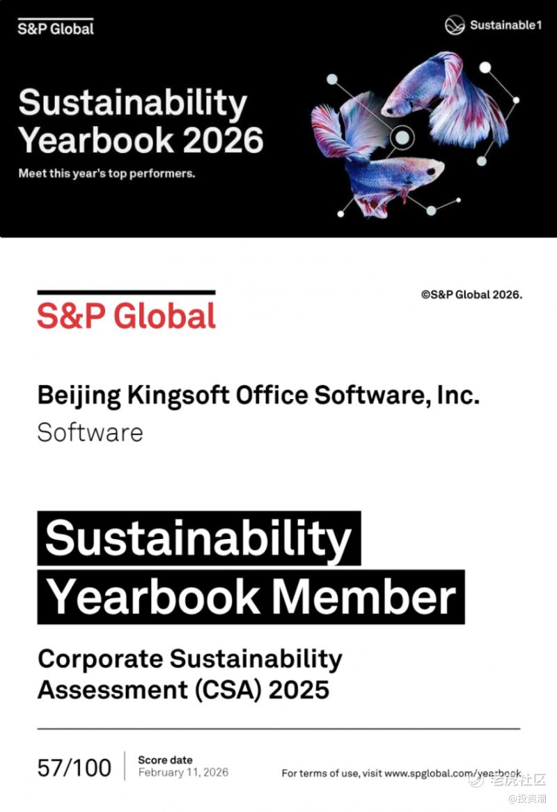 4月22日是第57个世界地球日,数字技术正成为企业推动绿色转型的重要方式。金山办公交出了一份亮眼的ESG成绩单:入选标普全球《可持续发展年鉴2026》,ESG评分跻身行业全球前15%,成为唯一入选的中国办公软件企业。在此之前,金山办公已获得MSCI AA级评级、中证AAA级评级。