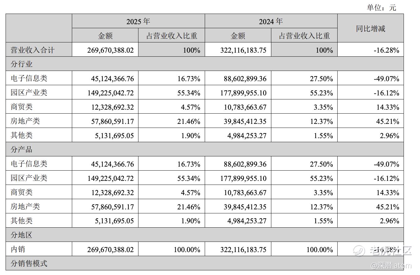 2025年,*ST数源园区产业类业务实现营业收入1.49亿元,同比减少16.12%。房地产及园区运营业务受行业下行周期影响,项目去化困难、销售滞销,大量资金沉淀在闲置项目中,呈现只投入不产出的局面,不仅无法盈利,还持续消耗公司资金;