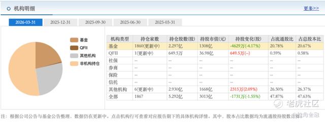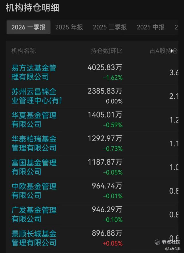 这只股票的“疯涨”背后,早已不是散户的独角戏。2025年四季度末,中际旭创取代宁德时代成为公募基金第一大重仓股;2026年一季度,这一地位依然稳固,主动权益基金持有市值高达738.96亿元。