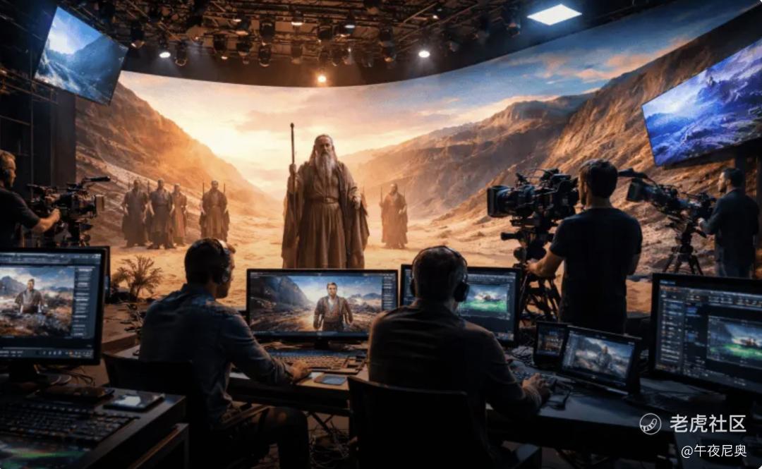 你走进一个虚拟场景,说"灯光再暖一点",AI立刻调整。你说"背景加个月亮",月亮下一秒就挂在天上了。演员的表演和虚拟环境无缝融合,不需要等到六个月后的后期阶段。