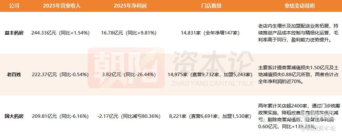 把益丰、老百姓、国大药房2025年的年报放在一起,其实就是行业变革期最有代表性的三种“人格”。