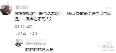 “爸爸的标准一般是活着就行,所以这句宣传语中译中就是……保准吃不死人?”