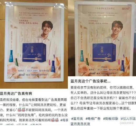 大概是蓝月亮在母亲节推出了一则广告,文案称“让妈妈洗衣更轻松、更省力、更省心”“妈妈您先用”等。因广告词和背景剪影均为女性做家务、育儿场景,被批将母亲角色与家务劳动强行绑定,默认洗衣是母亲的义务。