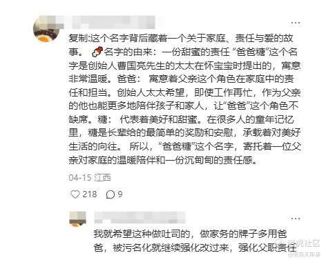 但也有网友作出了解释,称爸爸糖这个名字是有背景的——这个名字背后藏着一个关于家庭、责任与爱的故事。