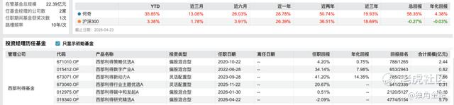 此外,4月22日,西部利得研究精选混合公告称,基金经理葛山因业务调整离任,其2024年6月开始管理该产品,规模5.79亿元,任职回报66.54%,年化回报31.23%,回报排名1277/4127。葛山目前还管理西部利得聚优一年持有、西部利得新润、西部利得鑫泓增强三只产品,合计规模8.4亿元。其管理的产品近一年年化回报32.74%,高于沪深300同期26.39%的收益率,中短期业绩较为亮眼。