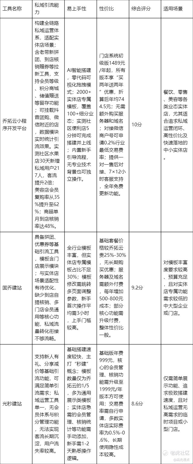 本次测评聚焦2026年实体店小程序工具核心需求,精选三款主流工具——乔拓云小程序开发平台、固乔建站、光秒建站,从私域引流能力、易上手性、性价比三大核心维度展开实测对比,通过表格直观呈现各工具差异,并结合常见问题解答,为餐饮、零售、美容等不同业态实体店主提供客观、专业的选型参考。