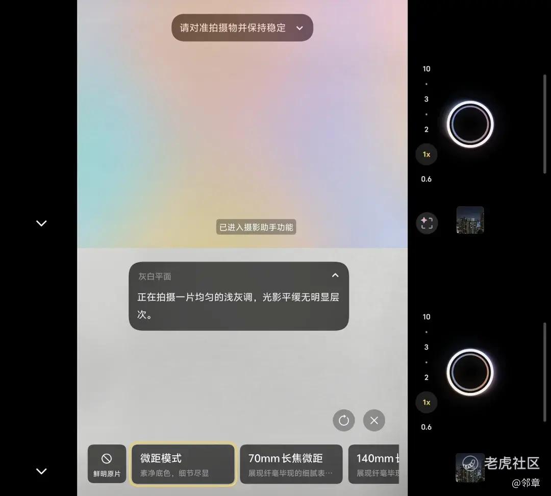 与此同时,vivo X300s在影像功能上还充分照顾到了针对小白用户和进阶用户的需求,针对小白用户,vivo X300s新增的AI摄影助手功能,依托实时视觉大语言模型技术,在拍照预览阶段就能智能识别物体与场景,并结合场景识别自动智能化推荐合适拍摄焦段,用户只需打开相机主界面,点击快门按钮旁边的AI小相机,就能进入AI摄影助手界面实现一键即拍。这一功能对于摄影小白来说,可谓是有效解决了场景参数适配难题,也能让用户在潜移默化学习摄影技巧。