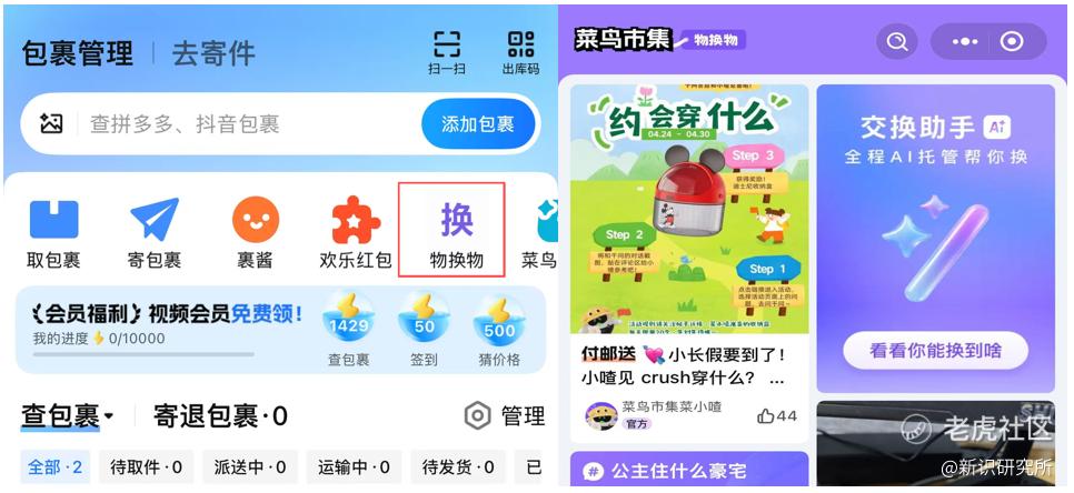 也是这种焦虑,让菜鸟不断想“越界”,例如市集里的物换物市场,甚至还有像知乎模式的菜鸟问问功能等等,本质上都是菜鸟在物流节点之外,试图叠加社交、内容、交易等更多元的能力,让App从“工具”进化为“社区”。