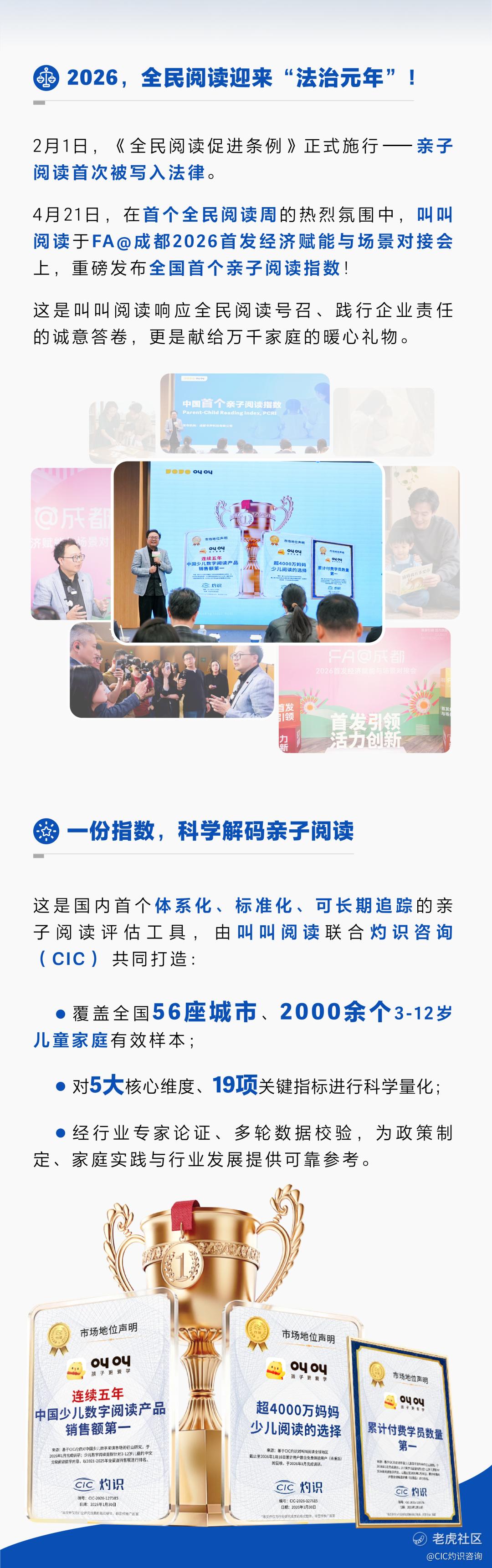 4月21日,在首个全民阅读周的热烈氛围中,叫叫阅读于FA@成都2026首发经济赋能与场景对接会上,重磅发布全国首个亲子阅读指数!