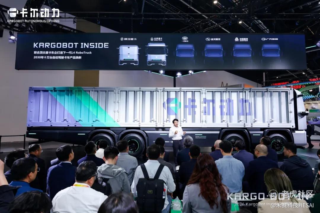 在 2026 北京国际车展上,卡尔动力正式发布面向 L4 货运下一个十年的核心战略—— KargoBot Inside战略,这是全球首个面向干线货运的“AI+Robot+Service”全栈赋能战略,标志着 L4 自动驾驶货运从技术验证正式迈入全维落地阶段,将在未来三年驱动 L4 货运进入“万台时代”。