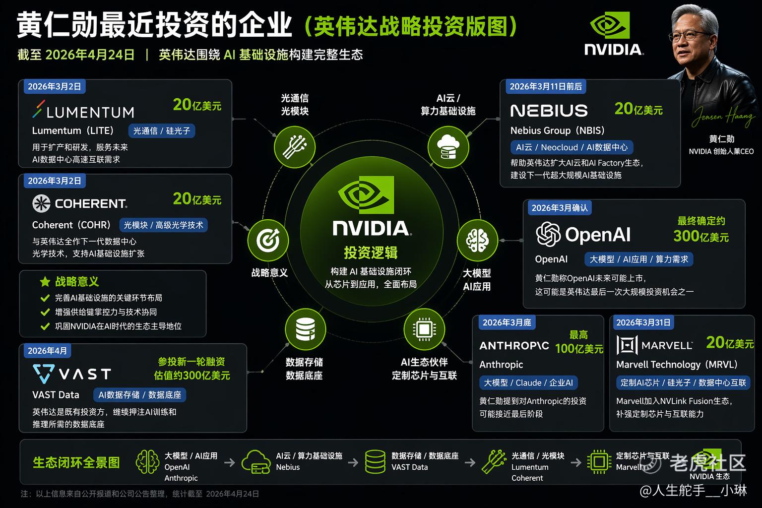 黄仁勋最近投的不是零散公司,而是在搭一个更完整的 AI基础设施闭环:
