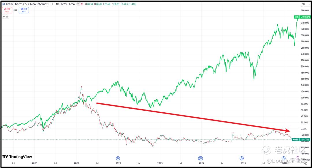 本轮牛市从924行情开始,刨掉924行情的暴力拉升的那几天,中概股,相比美股XLK没有超额收益。
