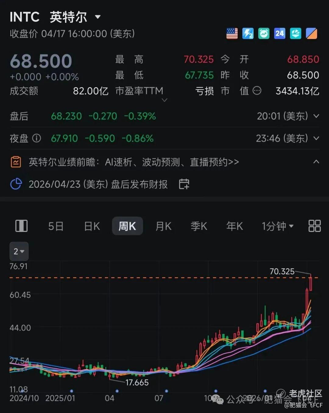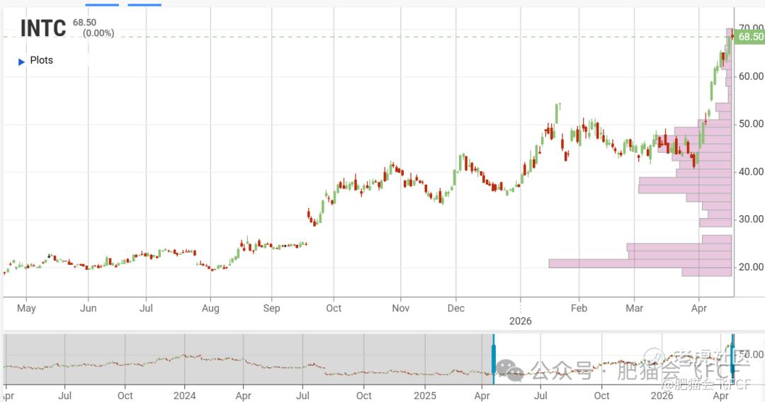 今天我们来聊这个话题:看着英特尔(INTC) $英特尔(INTC)$ 在2026年4月飙升至68.50美元,甚至一度突破70美元大关,过去一年里足足涨了2.5倍。这种造富神话确实容易让人眼红。但作为普通投资者,我们真的能在这一波狂飙中赚到这2倍多的钱吗?