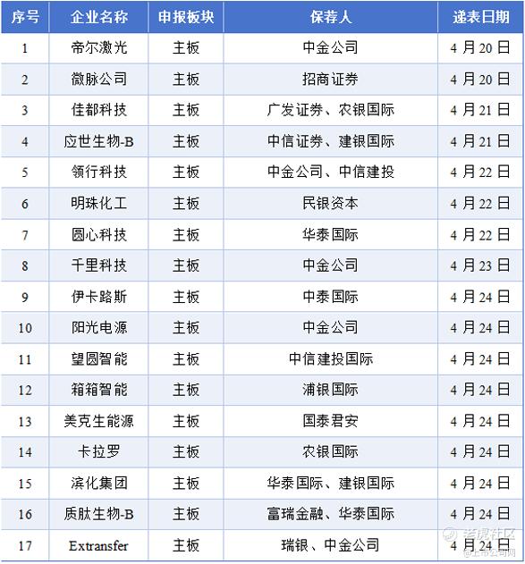 4月19-25日港股IPO周报:17家递表、4家过聆讯、4家招股