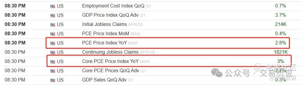 周四20点30分,美国将公布一系列经济数据,其中最受关注的是3月份PCE物价指数。由于三月份美国和伊朗之间的战争导致国际油价持续上涨,所以市场预期美国的PC物价指数会出现较大幅度的升高。