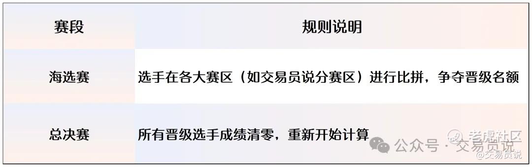 这意味着,海选领先优势不带入总决赛,每位晋级者同一起跑线对决。比赛更具悬念、更刺激,真正考验临场心态与交易实力。
