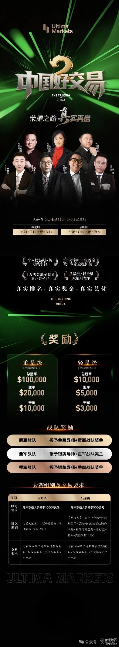 重量级:参赛资金 10,000 – 200,000美元,适合资深交易者与机构交易者