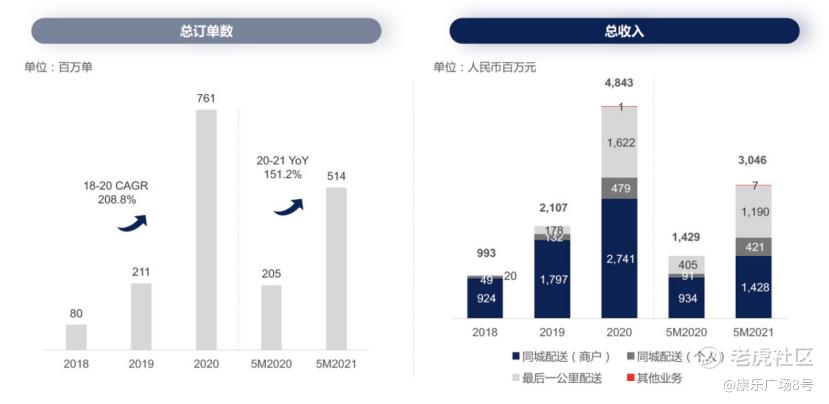 再看毛利部分,目前顺丰同城的成本主要是外包成本和雇佣骑手有关的雇员福利开支,可以统一认为是骑手成本/履约成本。由于外包骑手占90%以上,这也意味着相比美团配送,顺丰同城未来面临更低的政策风险。毛利方面,目前还是送一单亏一单的程度。2018年的毛利率为-23.3%,2020年毛利率收窄至-3.9%, 2021年前五个月已收窄至-0.9%。据悉,2021年顺丰同城的毛利将转正,未来几年将上升至5-10%的毛利率。