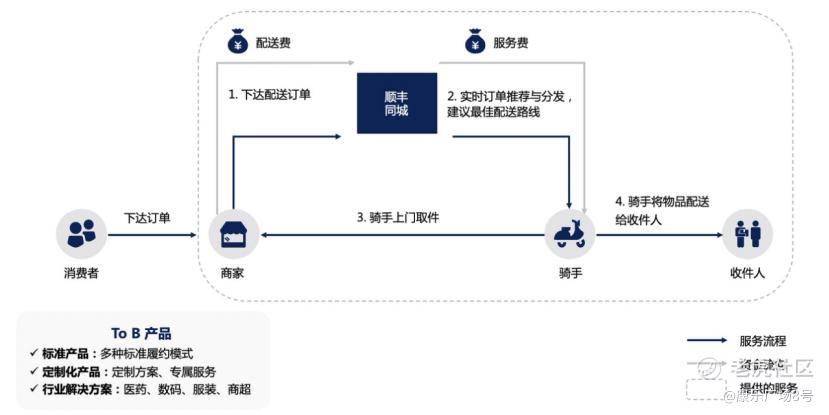 按照客户类型,可以将顺丰同城的业务划分为2B、2C和最后一公里业务。