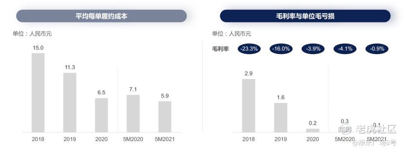 b. 2C业务单票收入比较高,2020年为21.29元,但由于配送距离较远且订单密度不够,常常需要一对一配送,骑手人工成本也较高,毛利率为-19.2%,未来随着订单密度提升或许能较快地转正。
