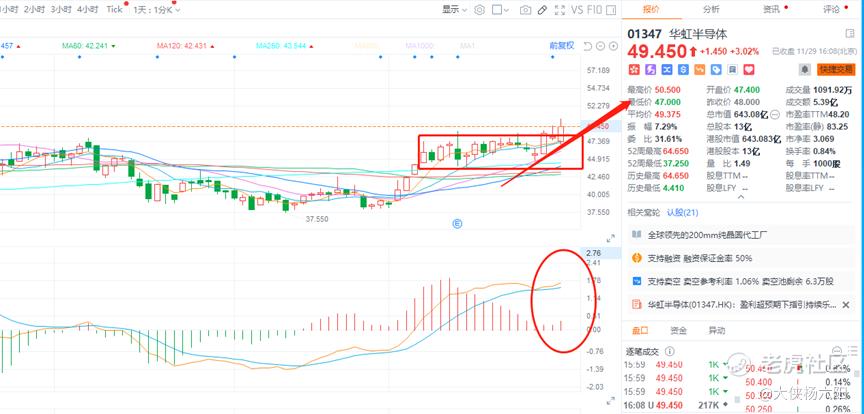 1.$华虹半导体(01347)$ 。今天延续上涨,盘中涨超3%。股价站稳了49元,目前上升趋势完好,并有加速的可能,技术面开始多头发散,持股待涨就好了。上方阻力感觉可以继续看到54元附近。依托5日均线做防御就好。