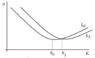 下面的图 1 形象地显示了在这两个规则下波动率倾斜是如何受到影响的。如果底层证券的当前水平是 S0 并且特定期限的波动率偏差由 L0 表示。在粘性strike规则下,偏斜保持相同的 L0。
