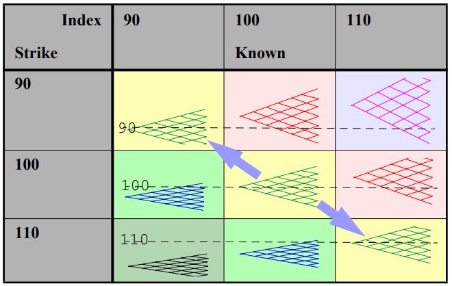 例如,假设 ATM 期权的隐含波动率为 30%,指数水平为 100。现在如果指数下降到 90,此规则将预测 90 股期权的隐含波动率现在为 30%。