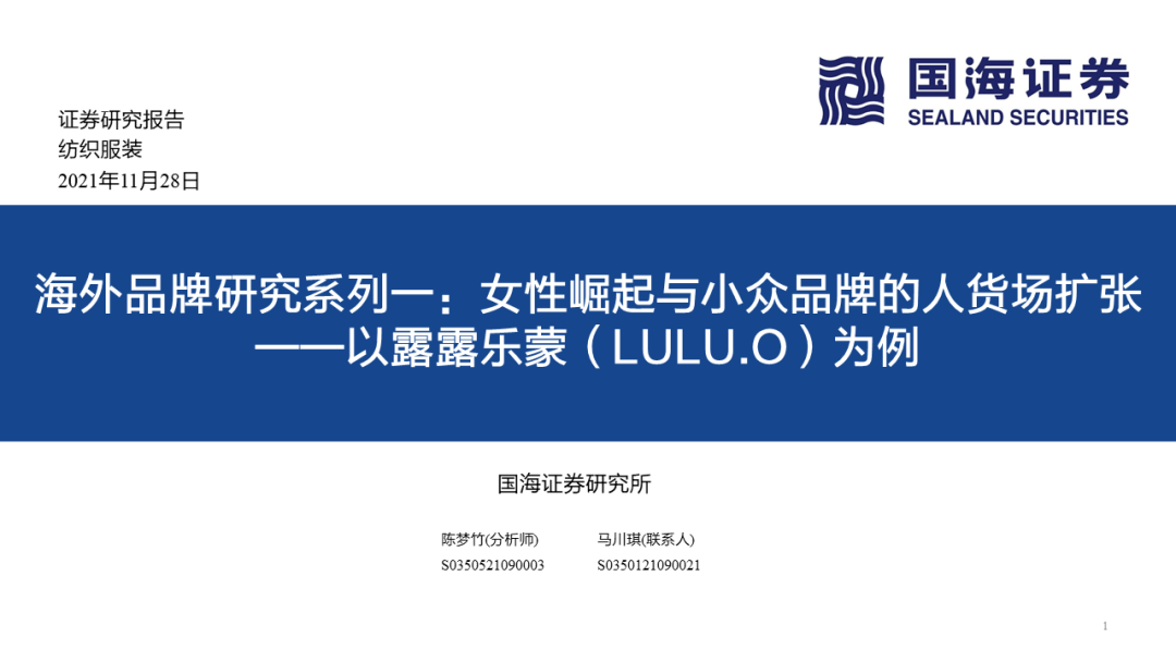 国海海外•消费 | 高端品专题研究之露露乐蒙(LULU.O):女性崛起与小众品牌的人货场扩张