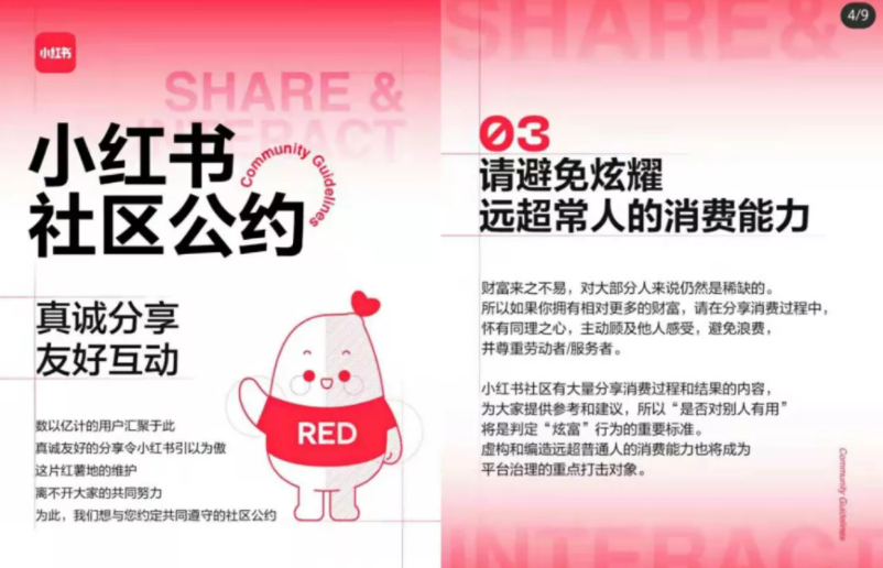 后来小红书还专门出了个所谓的「社区公约」,第三条就是告诫名媛们:不要假炫富。