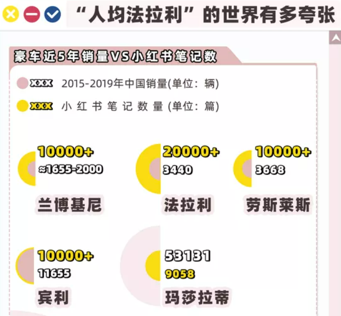 说一件挺有意思的事:去年10月,有自媒体统计发现,小红书上关于喜提法拉利的笔记高达2万多篇,而法拉利近五年只卖了3000多辆。