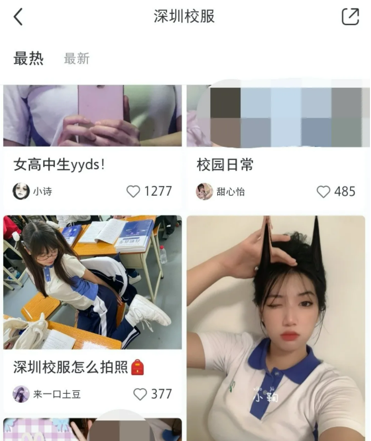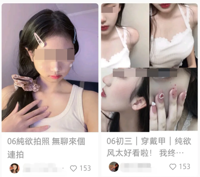 只要灵活运用「深圳校服、纯欲」等关键词,加上05、06等数字,就能弹出一大批穿着清凉、妆容成熟的小女孩。