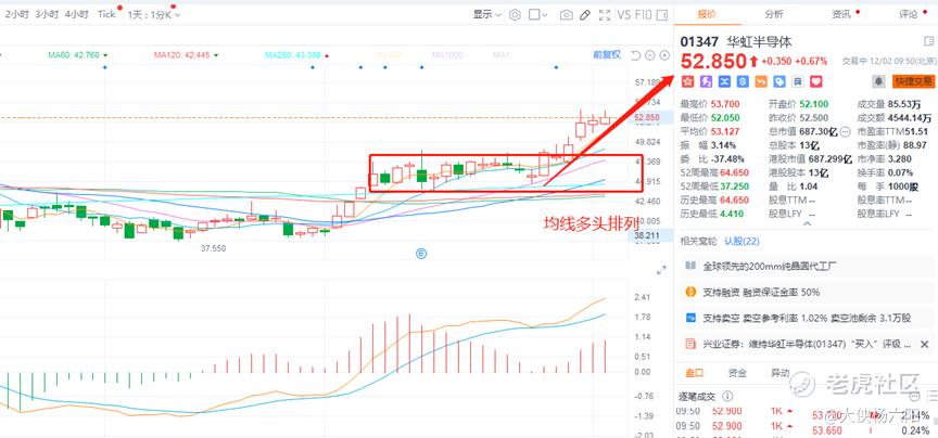 1.$华虹半导体(01347)$ ,早盘继续冲高,昨日复盘也强调了该股正处在上升趋势,今天预计会继续测试上方阻力54元附近,盘中感觉可以考虑高抛低吸,一旦突破就继续守稳,目前技术形态成多头排列形态,一旦形成突破会加速上行的。