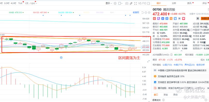 2.$腾讯控股(00700)$ ,今天早盘也是低开高走,早盘回撤460附近的支撑,站稳5日均线,反弹形态较好,上方阻力在475上方,目前技术形态修复的不错,股价在460附近初步形成了底部,所以腾讯盘中如有回撤可考虑低吸,冲高遇阻就抛一下,机会还是不错的。
