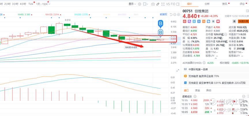5.创维集团,今天早盘反弹3.45%,该股经过调整后,近期出现横盘整理形态,今天再次放量反弹,意味着调整有望暂时告一段落,短线机会还是有的,可以重点关注一下。我在早盘低吸了点,基本卡到了日内低点。