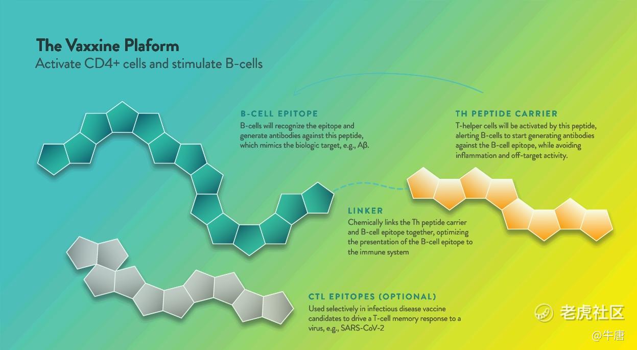 VAXX是一家新型的免疫治疗疫苗公司,于2021年2月由两家公司COVAXX和United Neuroscience重组而成。公司的专有平台Vaxxine平台主要包括1个辅助T细胞抗原合成肽库,实现了以合成肽为基础的候选药物的创新,旨在开发针对慢性病的疫苗,包括阿尔茨海默病、帕金森病、偏头痛和高胆固醇血症。