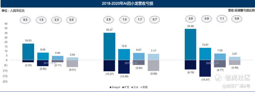 了解AI行业的朋友们都会知道这一领域常被诟病的方面就是长期的巨额投入、似乎看不到头的亏损,有种烧钱换营收的普遍迹象?过去三年商汤与其他三小龙(旷世、云从、依图)分别累计亏损高达人民币206亿元、127亿元、27亿元、61亿元,四小龙合计共亏损人民币421亿元,商汤一家接近其余三家亏损之和,但这里的亏损包含了未来可能兑现员工期权所造成的“公允价值损失”。 所谓“公允价值损失”通俗来讲就是每年随着公司估值、股价的变动所造成的员工期权总价值差异金额。因此这一部分损失其实并不是公司实际营运所产生的损失,而是由于股价上涨,公司所欠员工期权以金额计算变多而计入的损失。去除这一部分才能更好反映真实的亏损状态,经调整后,在过去三年,商汤、旷世、云从、依图的扣非后经调整亏损总额分别约为人民币21亿元、33亿元、13亿元及21亿元。商汤从18年末至20年末的经调整亏损额分别为2.2亿元,10.4亿元及8.8亿元,同比亏损实际呈先增后缩状态,累积亏损并不是目前最多的AI公司。那在2024或2025年商汤实现盈亏平衡的预期是否能如期而至呢?