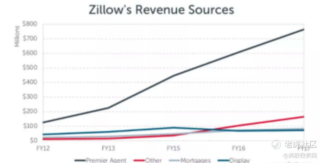 在2018年涉足炒房业务之前,Zillow的营收主要来源于两大板块:一是线上广告收入,由高流量所带来的广告投放。二是特定市场收入,包含高级房产经纪人项目(Premier Agent)和贷款业务服务两个部分。