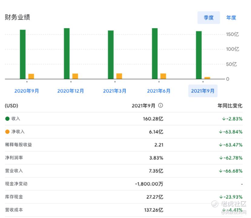 财报显示,该公司Q3净销售额160.28亿美元,市场预期为171.4亿美元,上年同期为164.95亿美元,同比下降2.8%;净利润6.14亿美元,上年同期为16.98亿美元,同比下降63.8%。