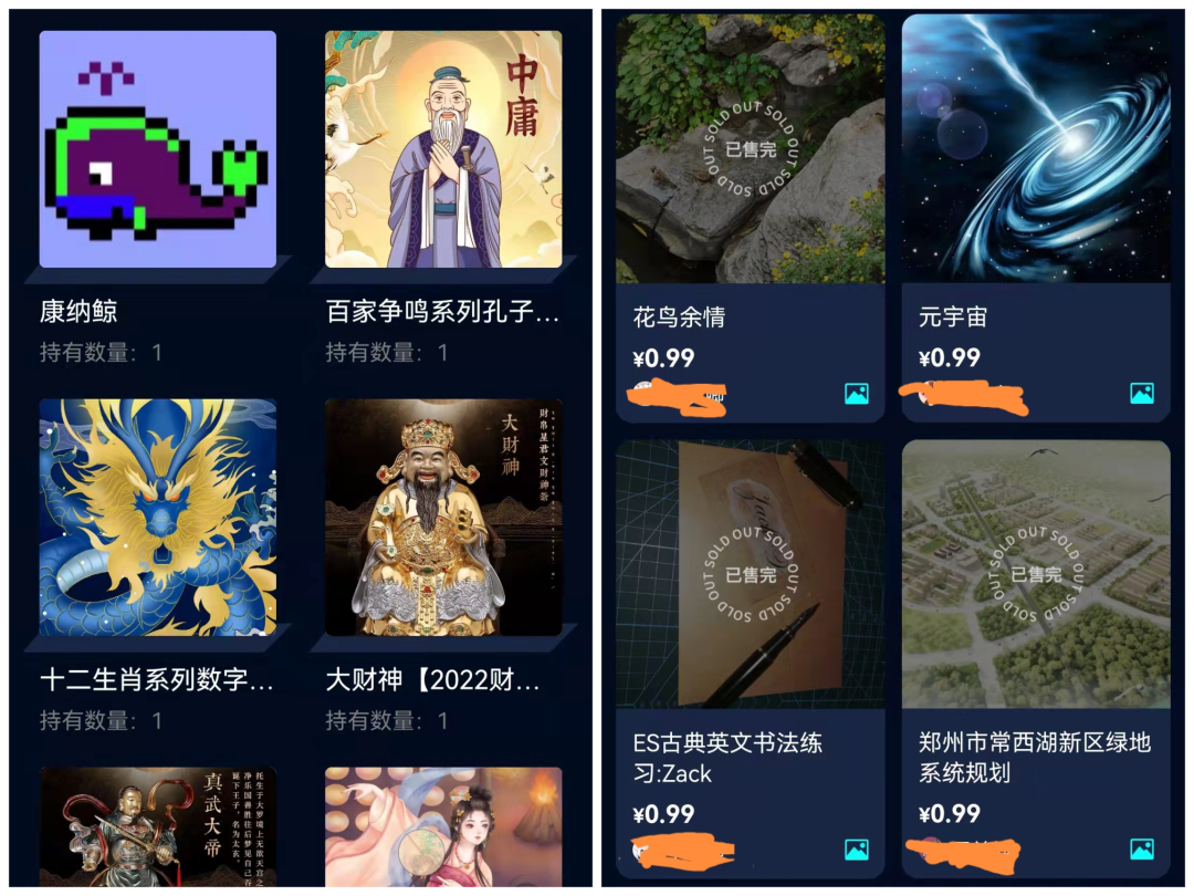 除了这种顶级NFT,如果上Opensea去看看那些长尾的NFT,鲜明的数字艺术风格,很多有创意的表达,你能感受到那些艺术家想传达什么。而打开中国众多的数字藏品平台,大多是一些没有灵魂的美图。