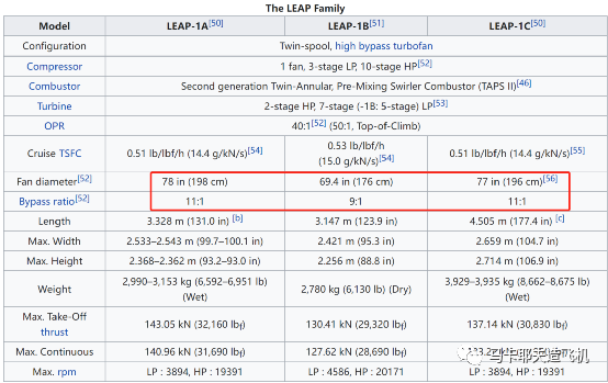 波音用的Leap-1B发动机,相比空客用的Leap-1A和和商飞用的Leap-1C,涵道比是最小的,只有9,另外两家都是11。也就是说,CFM供给波音的发动机,也是苗条款的。不过问题不大,瑕不掩瑜,这都是小让步。