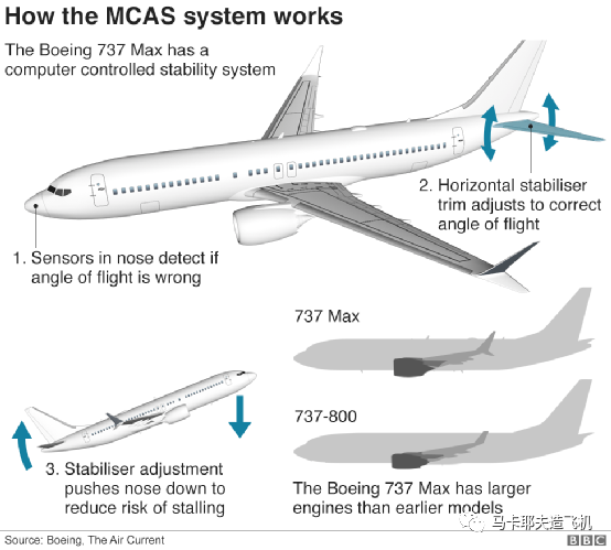 那咋办呢?波音这种百年巨头,有全世界最优秀的工程师队伍。他们给这个bug打了个补丁,给飞机的飞控系统加了个程序,叫机动特性增强系统(MCAS)。