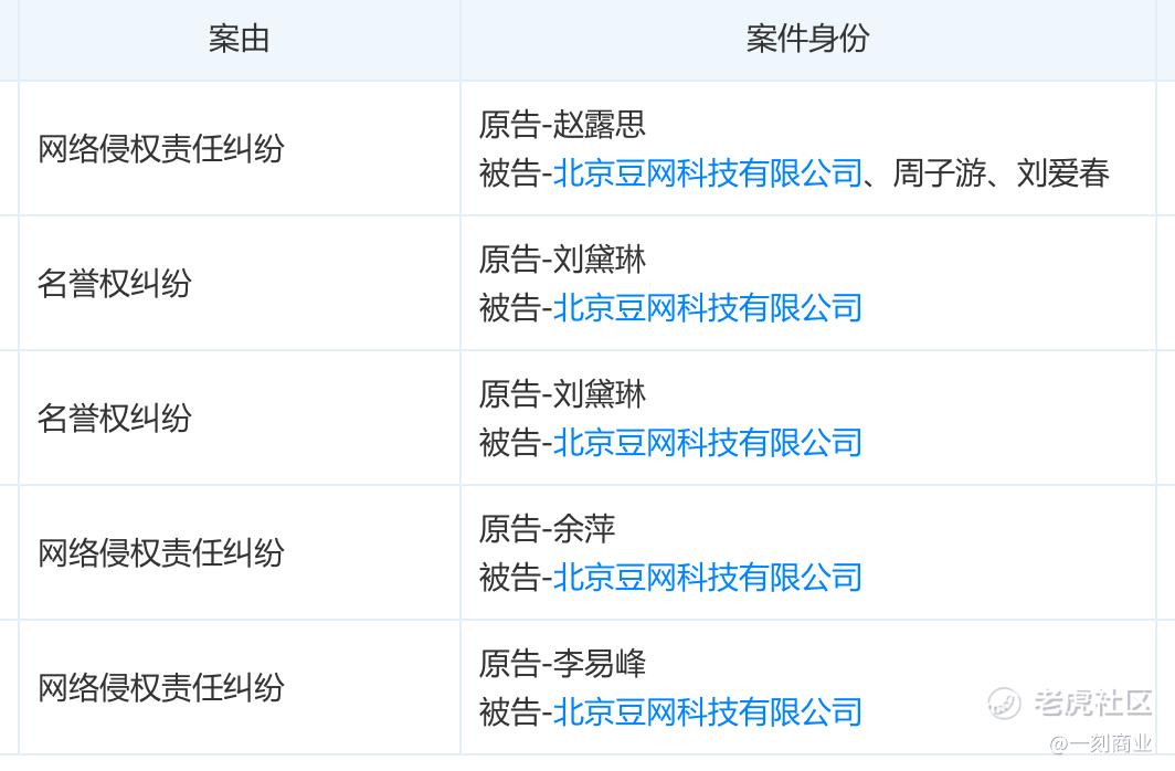 从天眼查可以看到,不少明星如井柏然、赵露思、李易峰、张艺兴等都因网络侵权责任纠纷将北京豆网科技有限公司(豆瓣公司主体)告上了法庭。