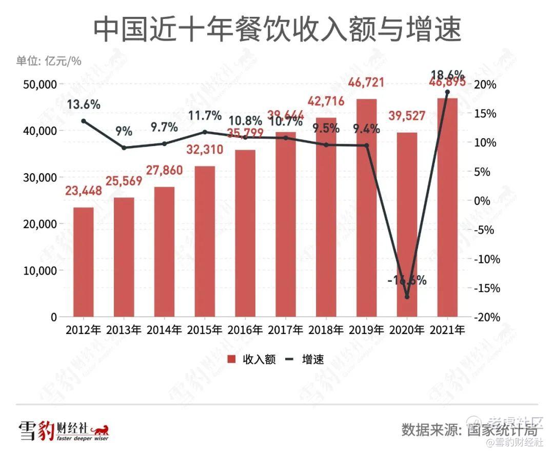 作为受疫情影响最严重的赛道之一,餐饮业在疫情期间受到重创。企查查App显示,2020年我国餐饮企业注销吊销量为85.8万家;2021年前10月,注销吊销了78.4万家,同比扩大18.1%。综合国家统计局数据,2020年,在连续两年超过4万亿元后,全国餐饮收入额下降了16.6%,首次低于4万亿水平。