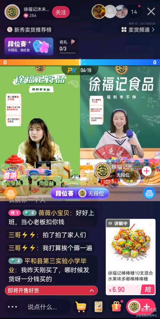 如果你以为快手上的这些直播间,只是单纯地蹦迪带货的话,那么你的想象力就有些匮乏了。为了让自己的货物更好卖,很多劲歌热舞的蹦迪直播间,还玩起了PK大赛。