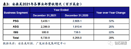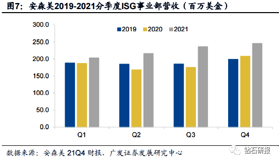 2021年安森美ISG事业部增速有限。安森美分为三个事业部集群,分别是PSG(Power Solutions Group)、ASG(Advanced Solutions Group)和ISG,主要负责电源解决方案、先进解决方案和智能传感解决方案,ISG中主要为汽车CIS业务。2021年汽车半导体缺芯严重,汽车芯片整体处于缺芯涨价中,安森美作为全球汽车CIS龙头,2021年ISG事业部收入增速为22%,相较其他汽车CIS厂商增长较慢。