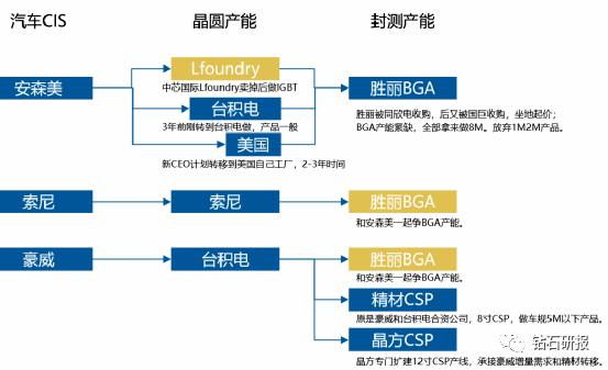 胜丽汽车CIS封测产能紧张,豪威封测厂扩产迅速。胜丽是全球汽车CIS的封测龙头,安森美、豪威和索尼在胜丽均有封测产能,在汽车CIS供不应求下,封测成本不断上涨,汽车CIS厂商封测产能竞争激烈。豪威与国内CIS封测龙头晶方科技深度合作,晶方科技在汽车CIS领域不断扩产,有望满足豪威科技的封测产能需求,在封测产能保障下,豪威科技优势显著。