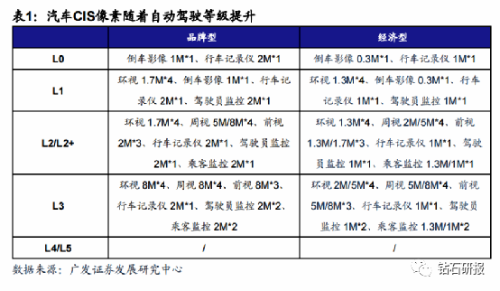 2、汽车CIS向高像素市场发展,豪威索尼逐渐凸显。