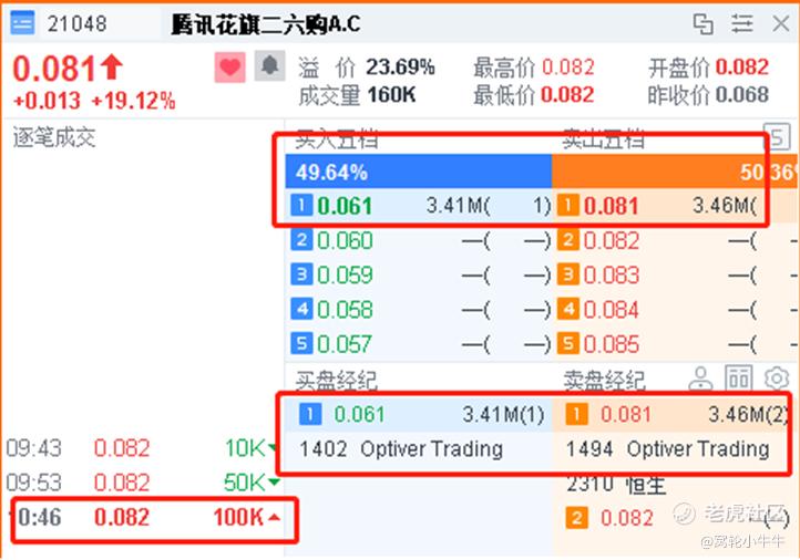 小亏或者少赚都还好,更难受的是在熄机时卖给街货导致大幅度的亏损。自己挖坑自己填,熄机就是盘中发行商不开价,盘口无报价,或只有散户的挂单。如下图