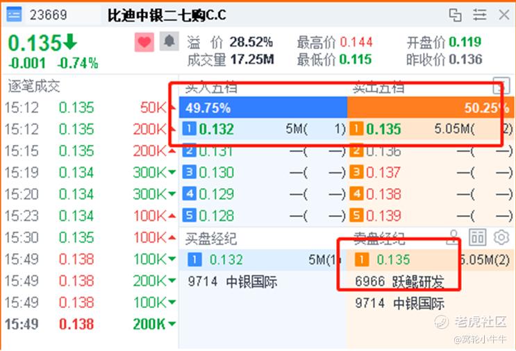 如上图,这个轮是中银发行的,从席位可以看出,有散户在挂单,应该挂了50K(=5.05M-5M)。