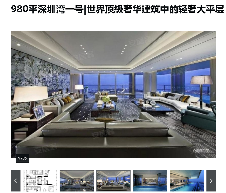 今天,有深圳的中介放出深圳湾一号980平米的豪宅。